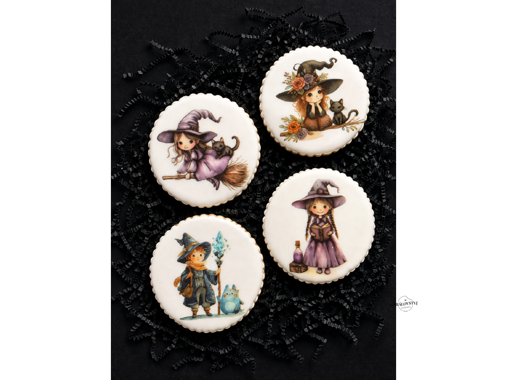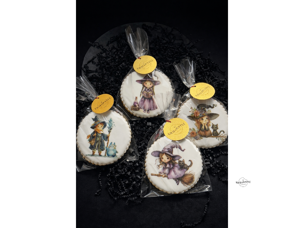 Každá sušenka je pečená z voňavého máslového těsta a zdobená jemnou bílkovou polevou s důrazem na detail – od klobouků až po rošťácké výrazy. Skvěle se hodí jako sladká výslužka pro děti, originální dárek, nebo stylový doplněk na čarodějnickou party.