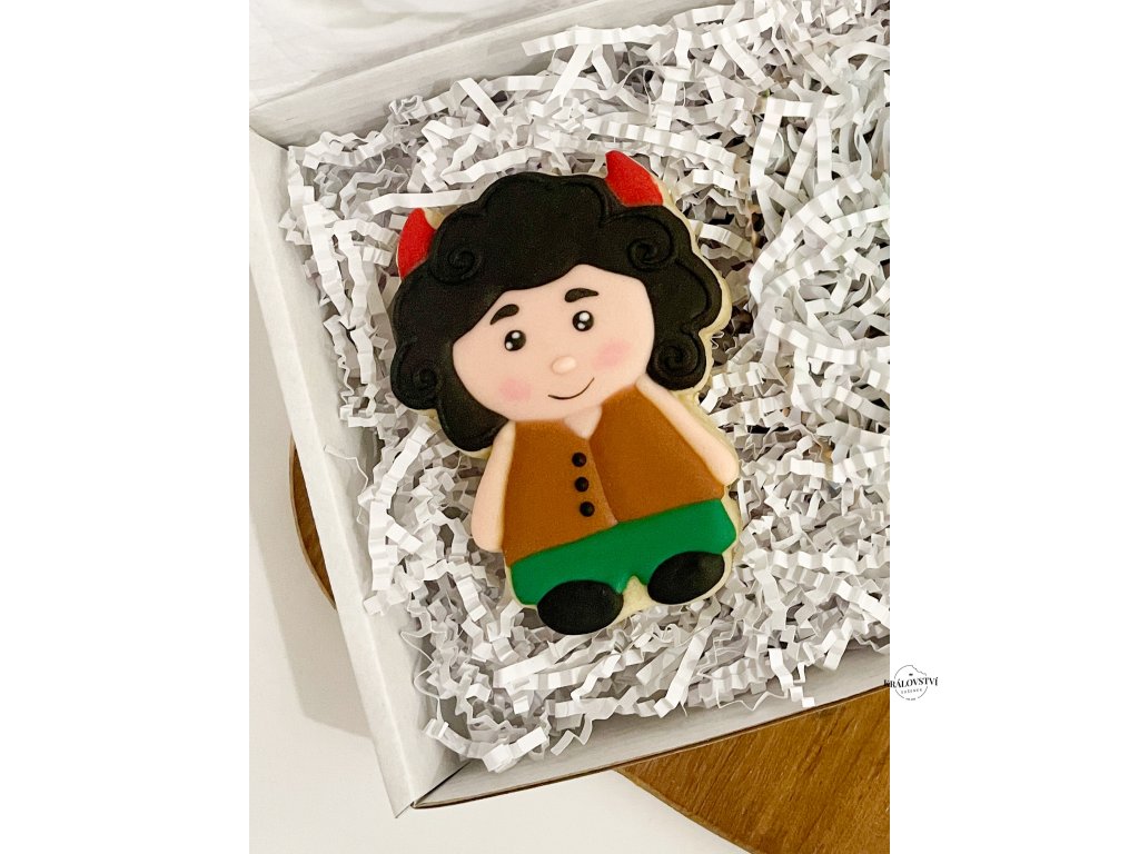 Složení: pšeničná mouka, máslo (20%), cukr, cukr třtinový, vejce, pasterizovaný vaječný bílek, voda, vanilkový extrakt vodový (cukr, pitná voda, 10 % Burbon vanilkový extrakt, 1% zrníčka vanilky, zahušťovadlo: tragant, koncentrát citronové šťávy); sůl, barviva: E102, E110, E122, E124, E132, E133, E127, E132, E133, E151, E153, E171, E172 – mohou nepříznivě ovlivňovat pozornost a činnost dětí. Skladujte v suchu a temnu.