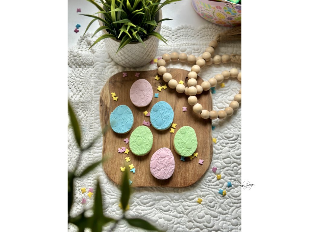 Dopřejte si kousek sladkého potěšení s naší sadou 6 lahodných sušenek ve tvaru velikonočních vajíček. Každá sušenka je pečlivě zdobená jemným reliéfním vzorem, který dodává nejen krásný vzhled, ale i jedinečný šmrnc. Perfektní jako velikonoční dekorace, sladká odměna k čaji či kávě nebo jako originální dárek pro vaše blízké.