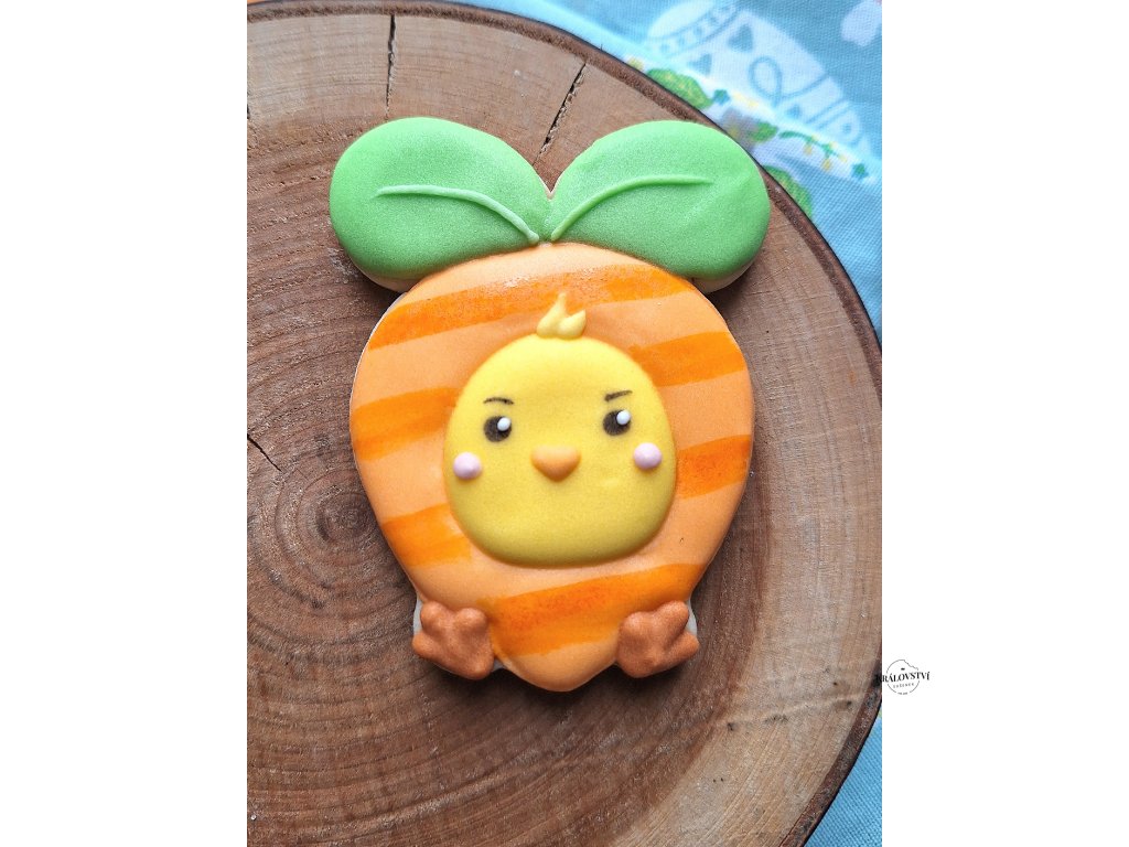 Ne každé kuře se spokojí s obyčejným peřím – tohle se rozhodlo stát se mrkvičkou! Originální máslová sušenka s veselým jarním motivem rozveselí děti i dospělé. Ideální jako hravý dárek nebo součást velikonočního košíčku.