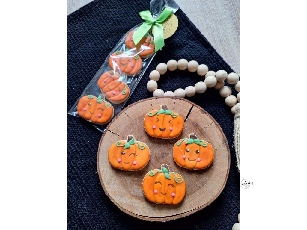 Velikost sušenek 4*5 cm, baleno v celofánu s mašlí.