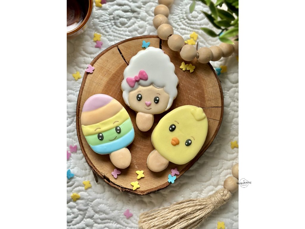 Vyberte si svůj oblíbený jarní motiv – ovečka, kuřátko nebo kraslice. Nebo si rovnou objednejte celou sadu 3 ks a užijte si sladké Velikonoce!