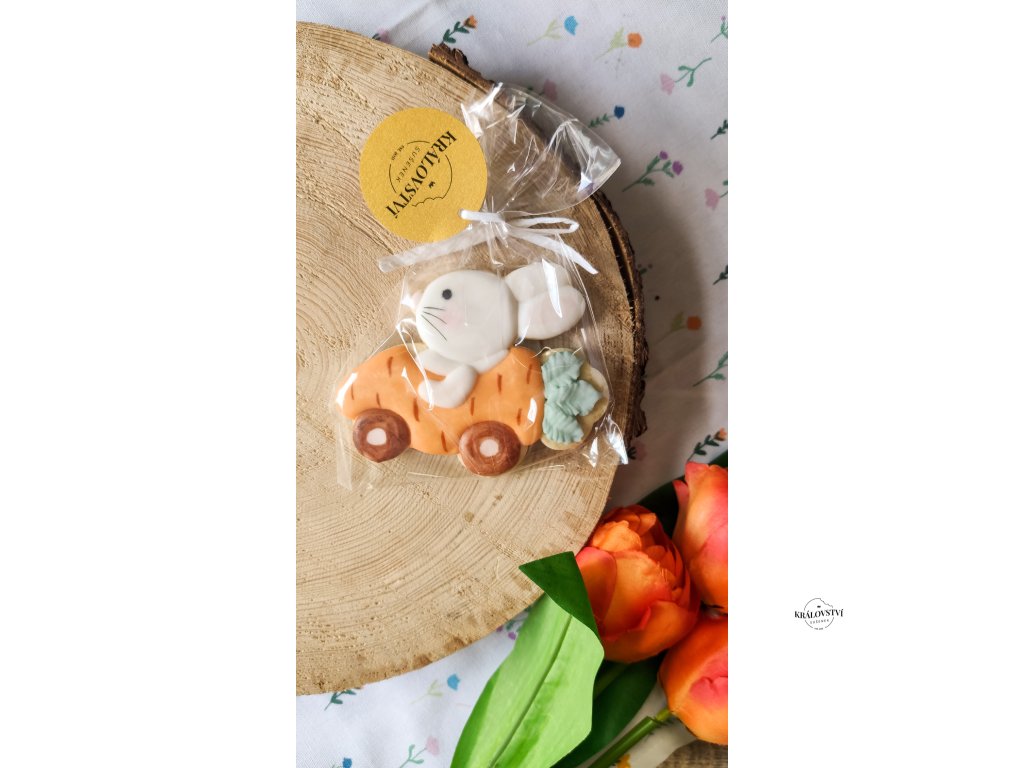 Připravte se na sladkou jízdu! Tento roztomilý zajíček se rozhodl nečekat na Velikonoce a ujíždí za dobrotami ve své mrkvové formuli. Máslová sušenka je nejen krásná na pohled, ale i neodolatelná na chuť. Perfektní jako dárek pro malé i velké závodníky nebo jako originální ozdoba velikonoční tabule!